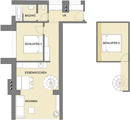 - Accessible by spiral staircase